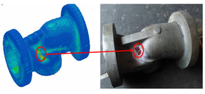 Above the image shows the higher stress zone inside the casting at highlighted area.