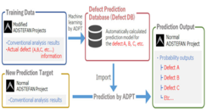 The Advanced Defect Prediction Tool (ADPT), developed by Hitachi ICS Japan, is a powerful solution designed to help users identify defects more quickly and accurately using Machine Learning. ADPT leverages a master database or user-created data to predict defects in a target project through Machine Learning techniques. Figure 1.1 illustrates the process flow of ADPT analysis.